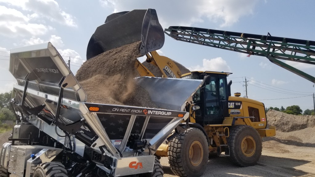 At 6′ high, you can load the slinger from the rear with a small skid steer or from the side with a large loader.